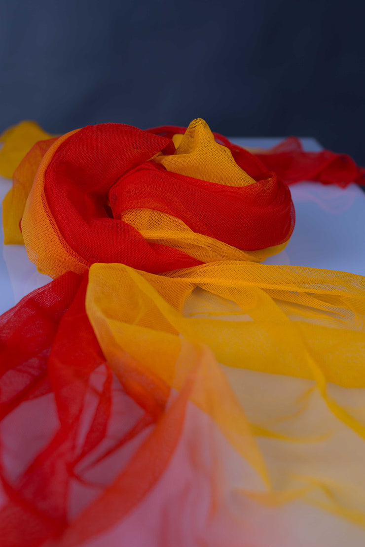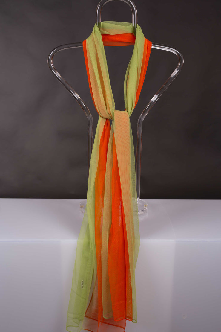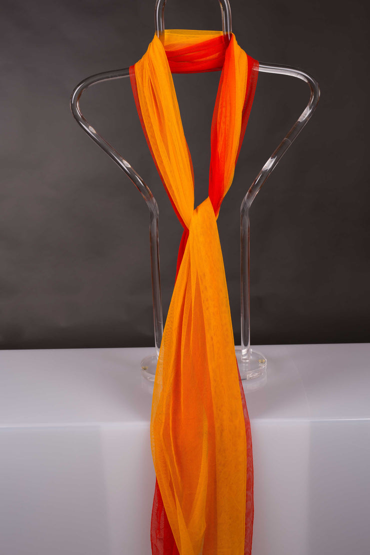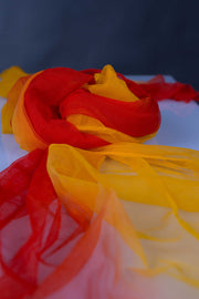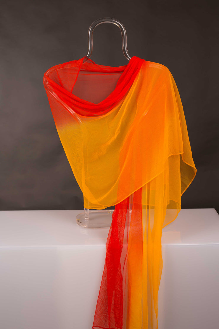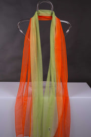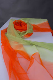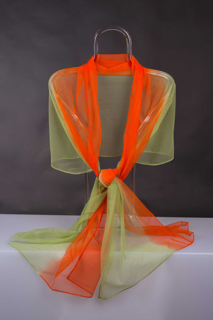 Este chal de tul bicolor es el complemento perfecto para fiestas y bodas, combinando elegancia y frescura. Disponible en dos combinaciones de colores sofisticadas: amarillo con naranja o naranja con verde, aporta un toque vibrante y delicado a cualquier atuendo. Su textura ligera y translúcida realza tu estilo con un aire de distinción y alegría. Ideal para realzar tu presencia en ocasiones especiales con un detalle sutil pero impactante.