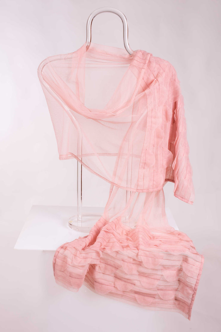 Dale un toque de sofisticación y romanticismo a tu look de invitada con este delicado chal de tul en color rosa , perfecto para bodas, bautizos, comuniones y cualquier evento especial. Confeccionado en un tul fino y vaporoso, este complemento destaca por su caída ligera y sus originales acabados con pliegues en los extremos, que aportan movimiento y estilo.