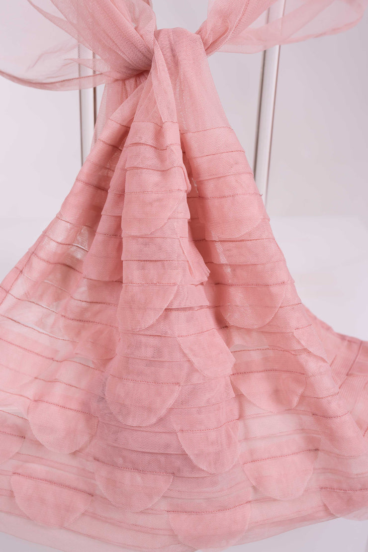 Chal Fiesta Tul Rosa con aplicaciones Redondas en pliegues