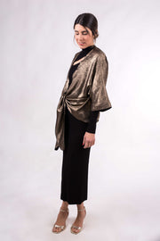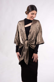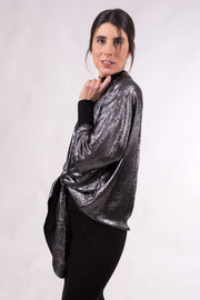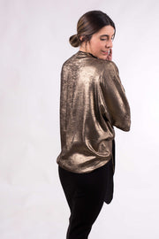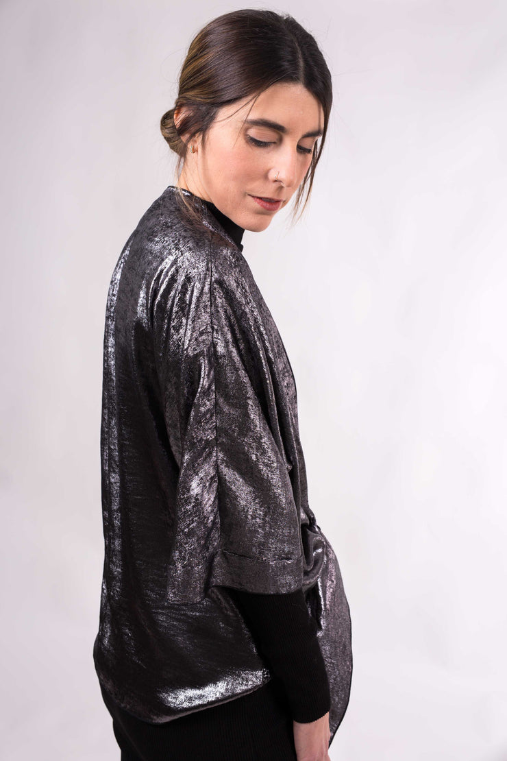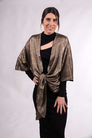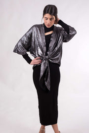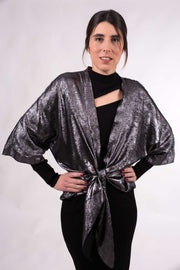 Envuélvase en el resplandor de nuestra Chaqueta Fiesta Eclipse, una pieza atemporal de talla única que realza cualquier atuendo festivo. Disponible en tonos dorado y plateado metalizados, esta prenda sofisticada aporta un toque de elegancia a eventos especiales, cócteles y celebraciones nocturnas. Su diseño versátil garantiza un ajuste favorecedor para diversas siluetas.